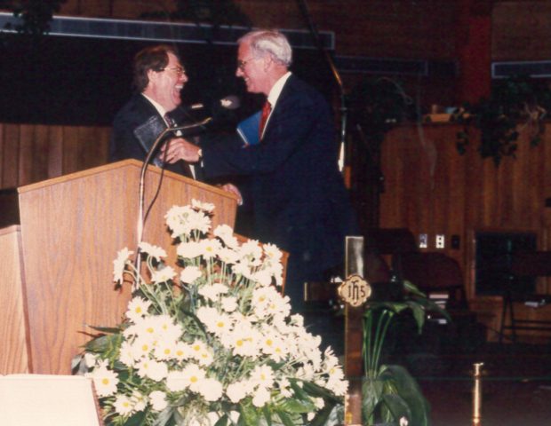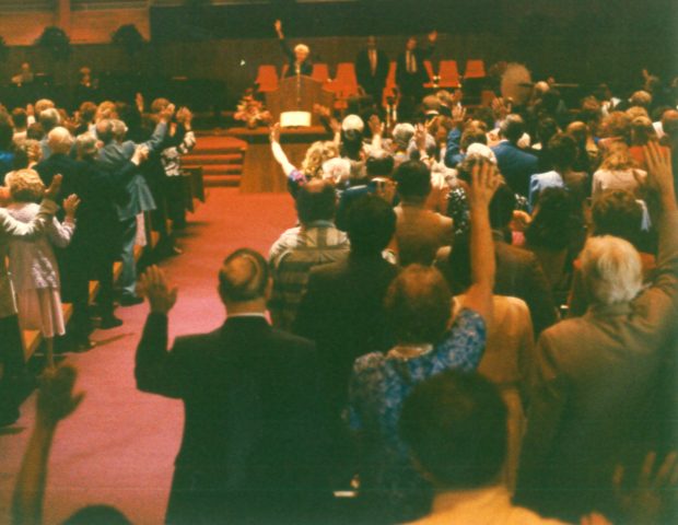 March 1989 Held first service at the Southeastern University Chapel with 800 people.