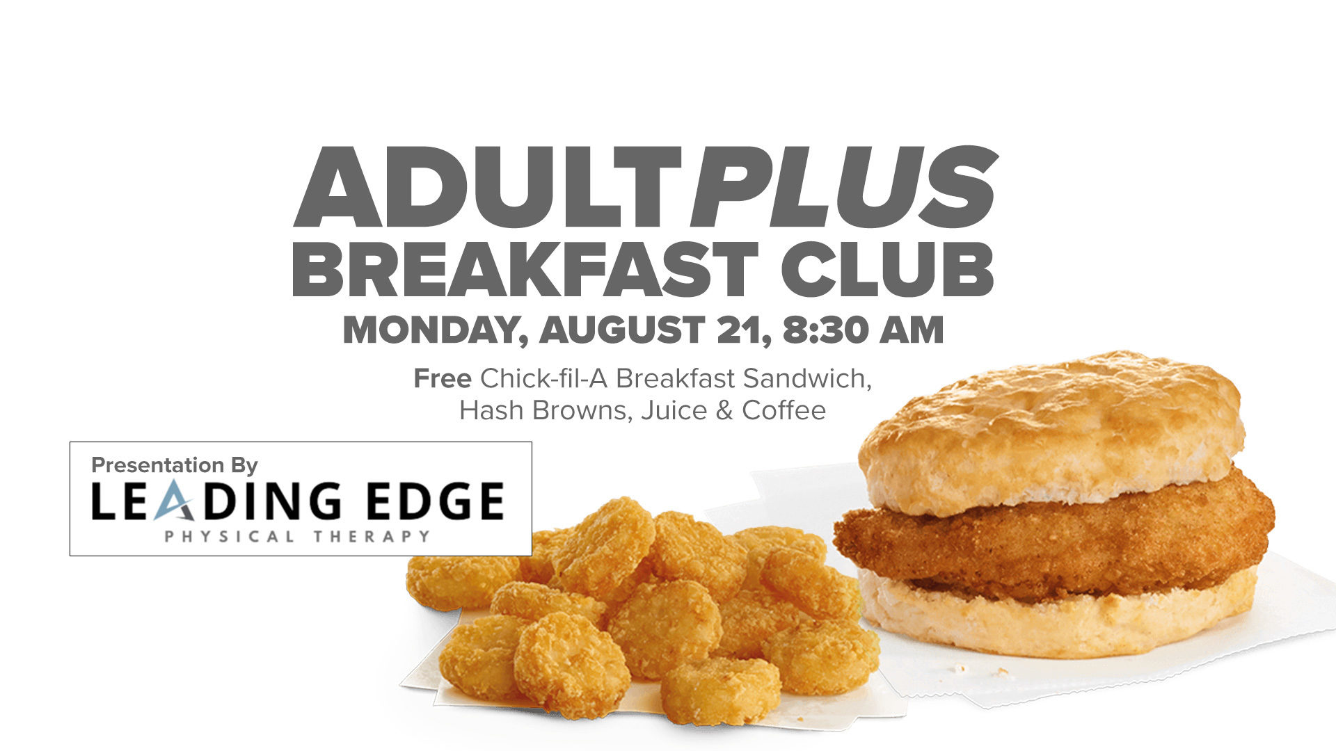 Those 60+ are invited to join the August AdultPlus Breakfast Club to hear from the team at Leading Edge Physical Therapy and Sports. They'll be sharing tips for “Staying Limber In Your Later Years," and answering your physical health and mobility questions.