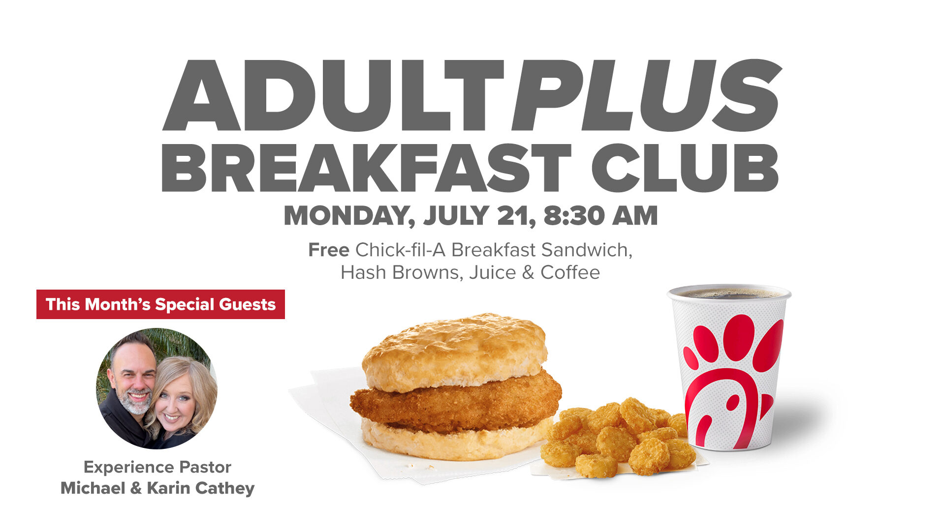 Those 60+ are invited to this month’s AdultPlus Breakfast Club on Monday, July 21, from 8:30-9:45 AM, in room 116 of the Family Life Center at Victory’s North Lakeland Campus.