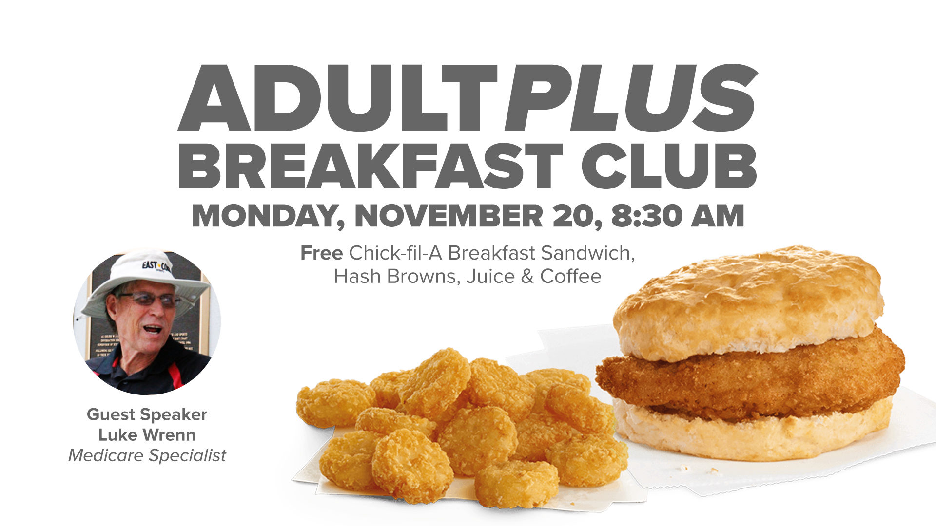 Those 60+ are invited to join the September AdultPlus Breakfast Club to hear Luke Wrenn, a Medicare Specialist, share a session entitled "Medicare 2024, Questions, Asked And Answered."