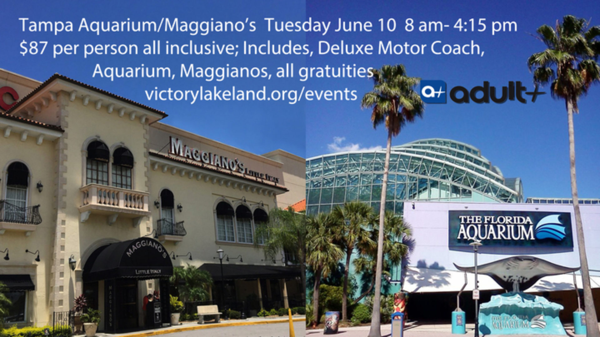Those 60+ are invited to register for the upcoming AdultPlus day trip to the Tampa Aquarium and Maggiano’s on Tuesday, June 10!