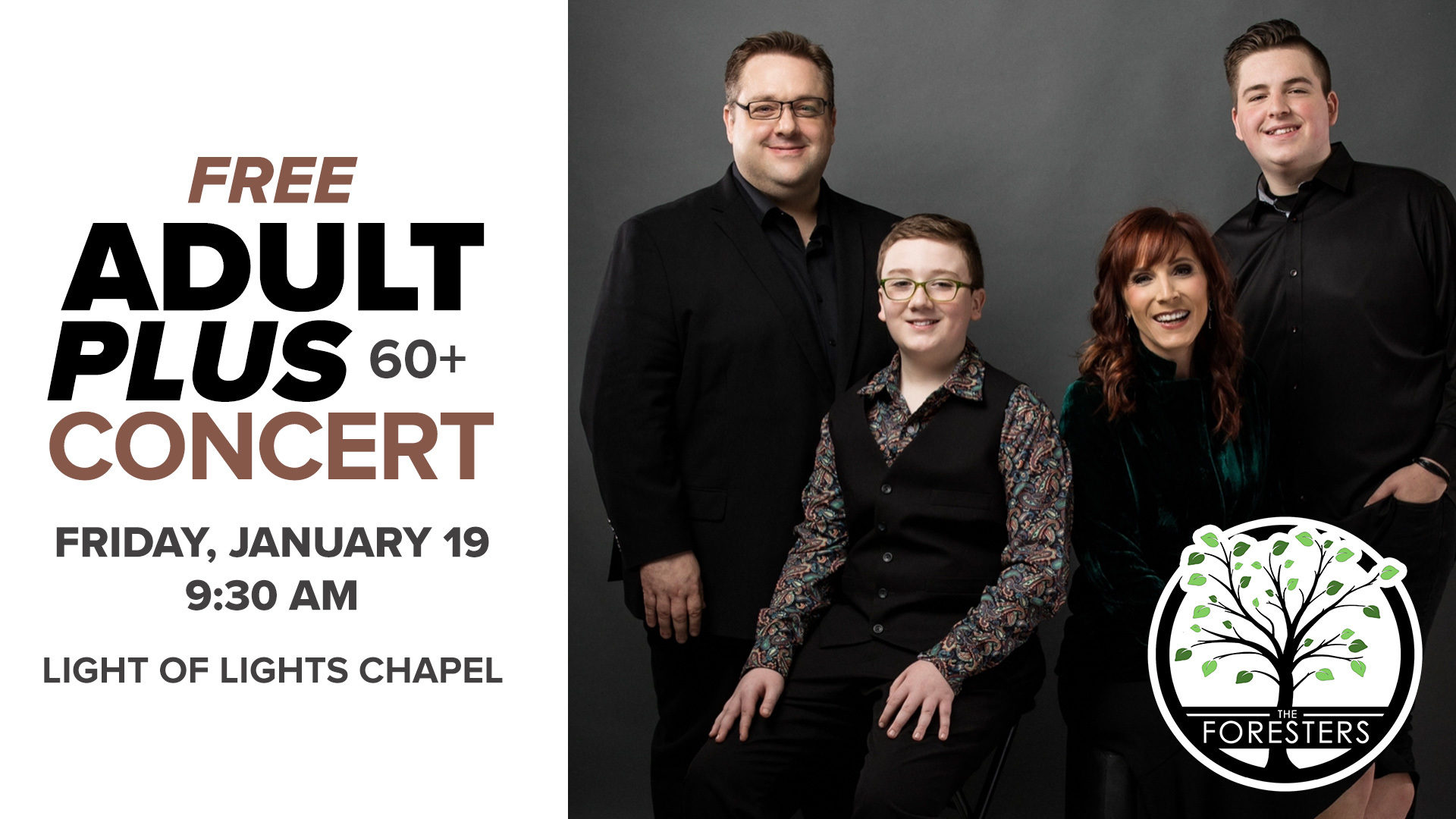 Due to a Foster family emergency, we are postponing the AdultPlus concert originally scheduled for January 19. We'll provide a new date as soon as possible.