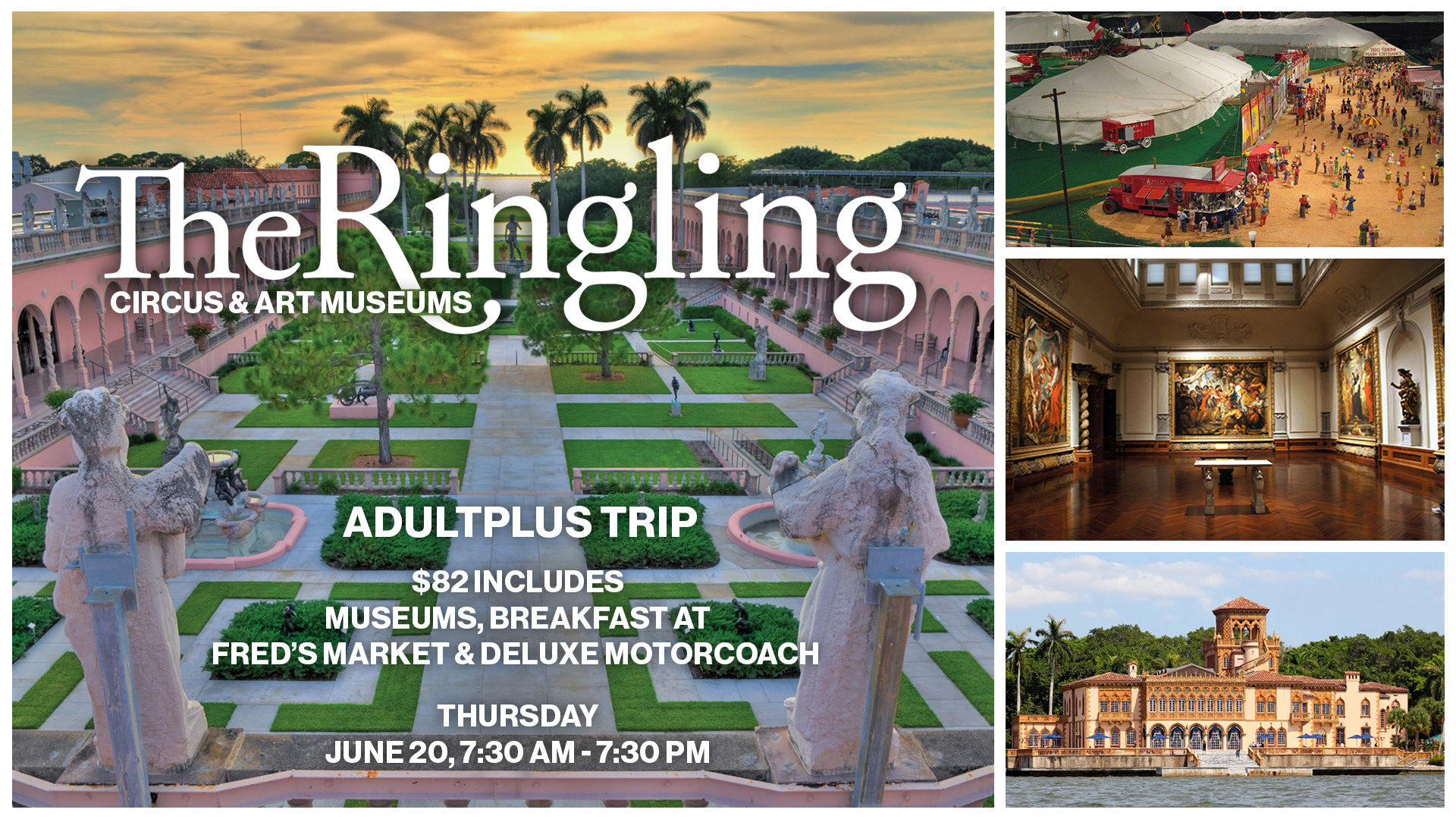 Those 60+ are invited to reserve a spot for a special day trip to the Ringling Circus and Art Museums in Sarasota happening Thursday, June 20, from 7:30 AM to 7:30 PM.