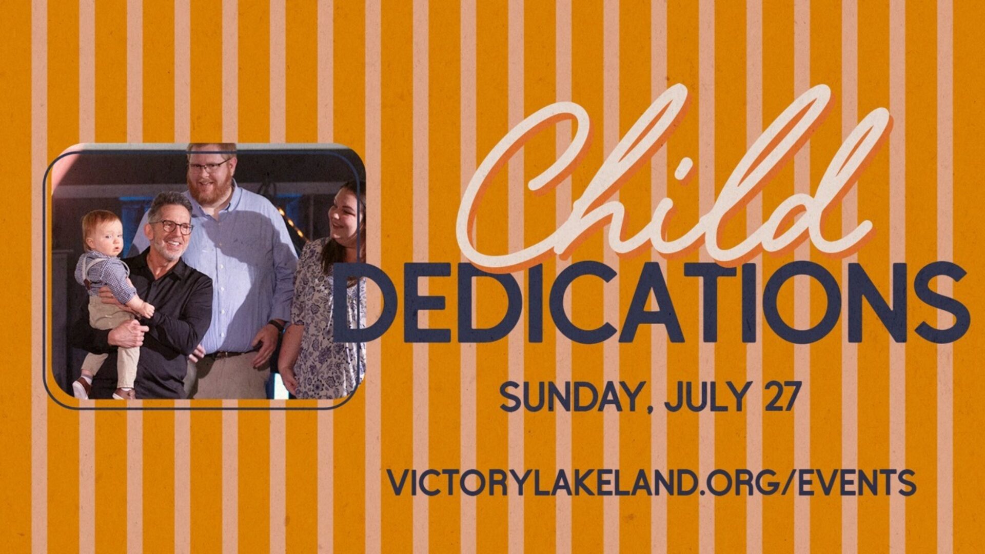 If you attend Victory's South Lakeland Campus and have recently welcomed a new baby into your home or have older children who have never been dedicated, register today for one of the upcoming Child Dedication services on Sunday, July 27. Don’t miss this cherished time when we will pray over and dedicate children to God's call on their lives.