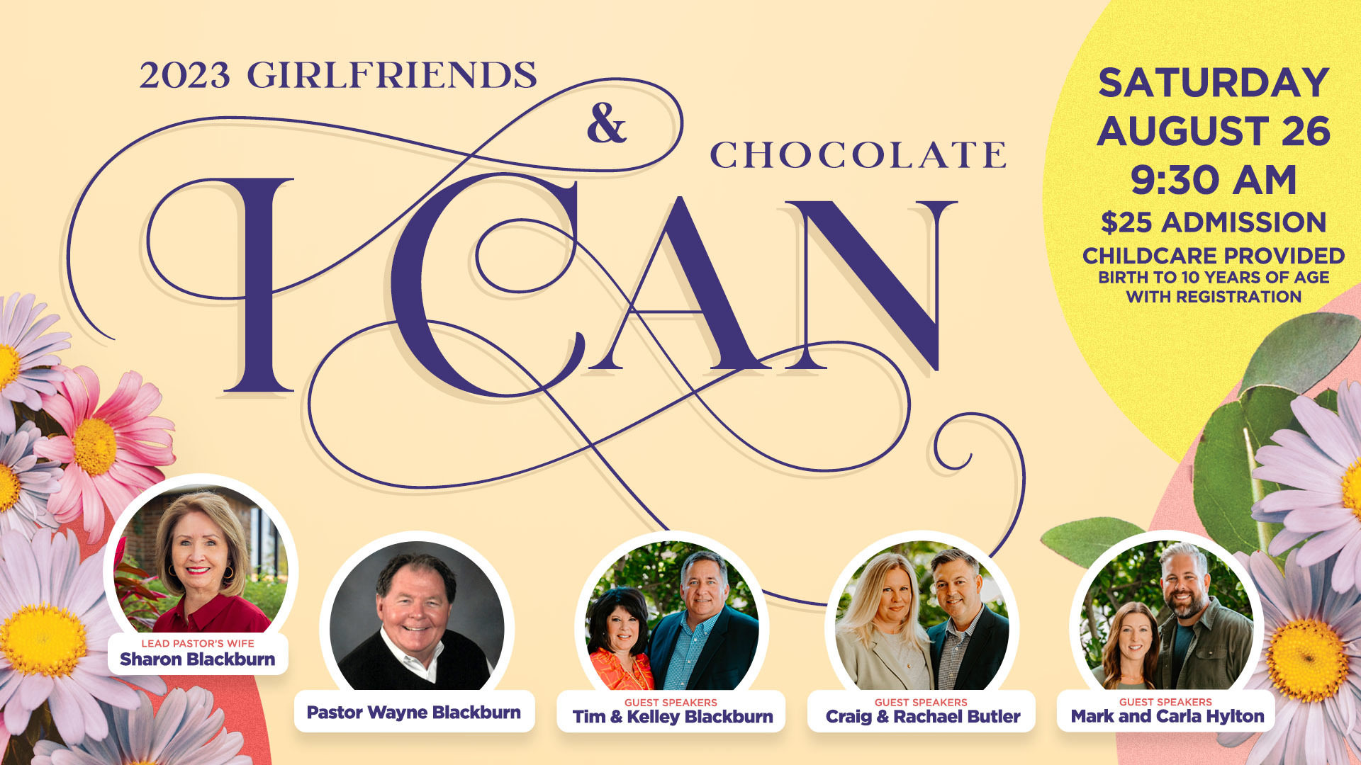 All ladies are invited to join us at the 2023 Girlfriends & Chocolate event, happening Saturday, August 26, at 9:30 AM, at Victory's North Lakeland Campus.