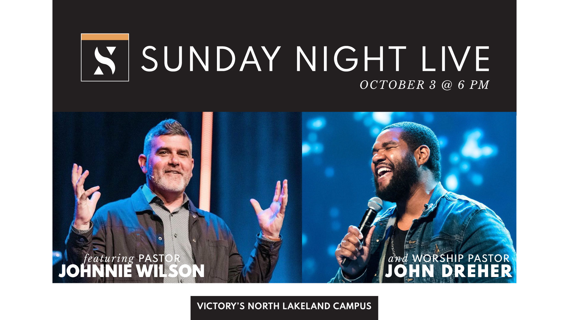 Join us at Victory's North Lakeland Campus Sunday evening, October 3, at 6 PM for the next "Sunday Night Live," our new, once-a-month Sunday night service. Each month, these special Sunday evening services will be unique, as we focus on a fresh and engaging topic.