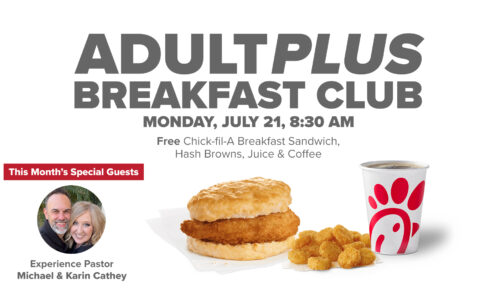 Those 60+ are invited to this month’s AdultPlus Breakfast Club on Monday, July 21, from 8:30-9:45 AM, in room 116 of the Family Life Center at Victory’s North Lakeland Campus. Breakfast is free and will feature Mike & Karin Cathey.