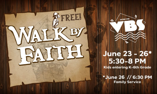 Victory Kids invites kids entering K-5 through those entering 6th grade to join us June 23 - 26, from 5:30 - 8 PM each evening, for four nights of jam-packed, non-stop excitement and fun at VBS: “Walk by Faith.”