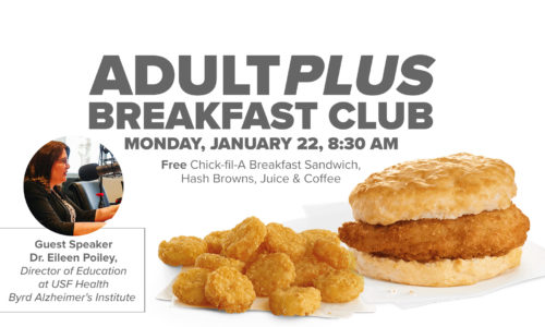 Those 60+ are invited to join the January AdultPlus Breakfast Club to hear Eileen Poiley from USF share a session entitled "Remember To Take Care Of Your Memory."
