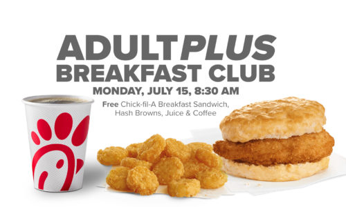 Those 60+ are invited to register for July’s AdultPlus Breakfast Club on Monday, July 15, from 8:30-9:45 AM, in room 116 of the Family Life Center at Victory’s North Lakeland Campus. Come enjoy a delicious FREE Chick-fil-A breakfast meal and the opportunity to connect with some great people.