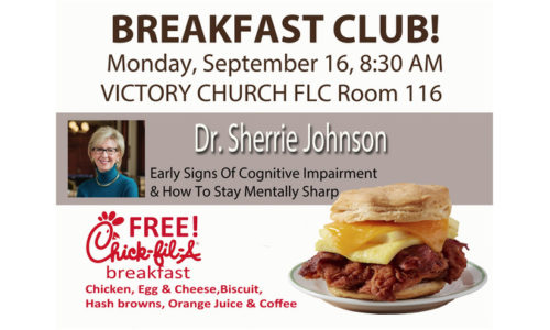 Those 60+ are invited to this month’s AdultPlus Breakfast Club happening Monday, September 16, from 8:30-9:45 AM.